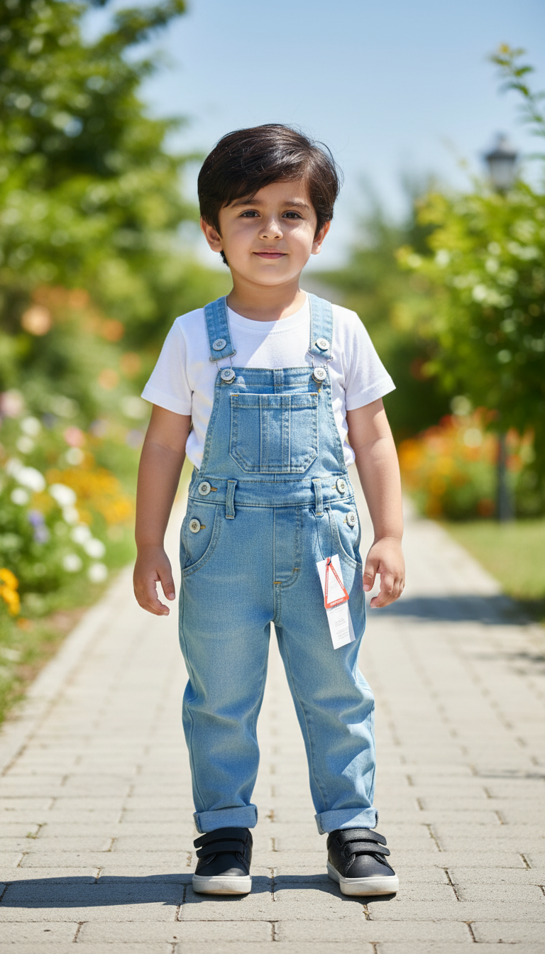 Crafted from high quality denim, our Kids Denim Dungaree in Dark Blue is perfect for children aged 1-10 years. Made for export, it guarantees exceptional durability and style. Let your little ones play in comfort and fashion with our premium dungarees.