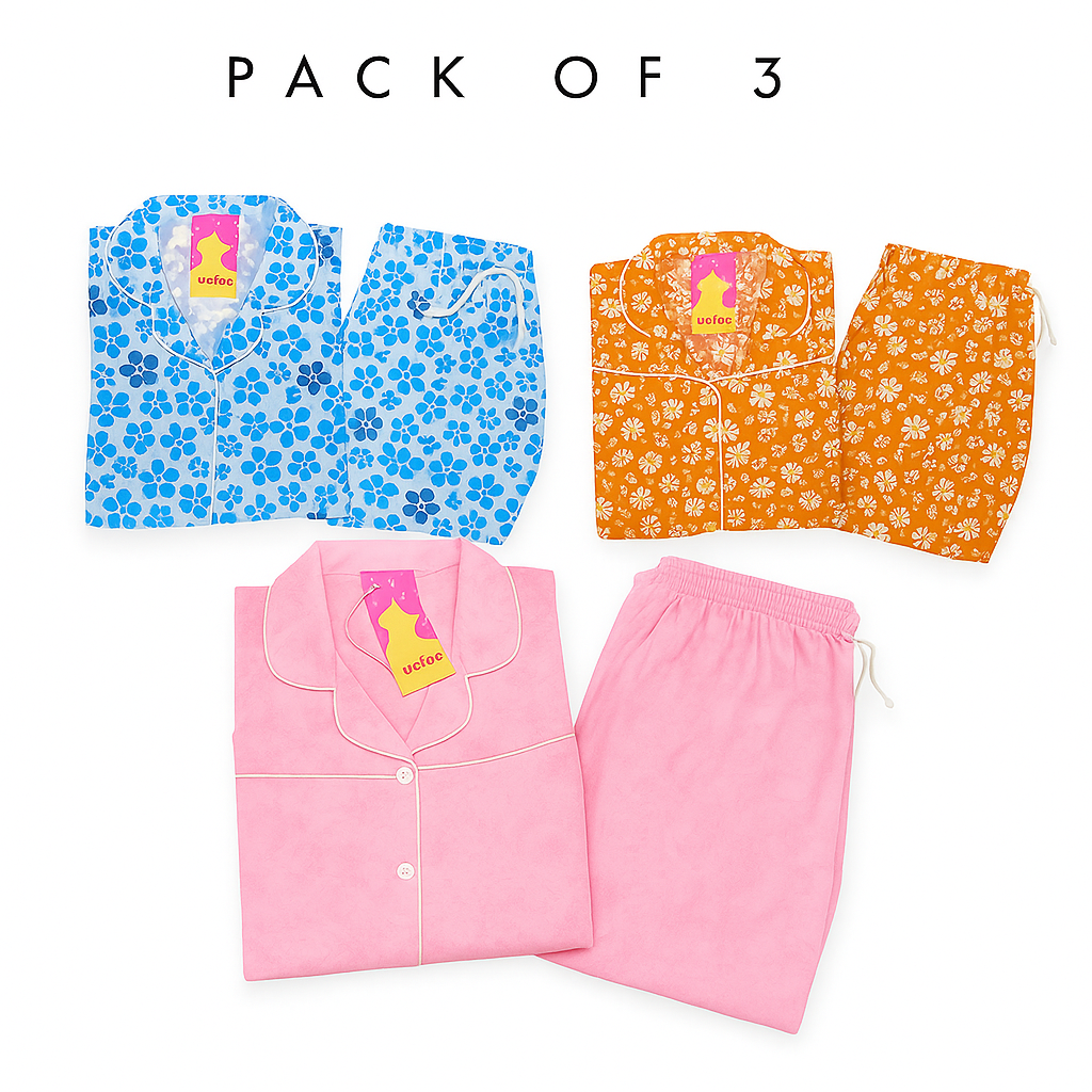 Expertly crafted with soft and breathable cotton fabric, this pack of 3 Nightsuites is perfect for your little ones aged 1 to 12 years. Each set features unique and fun prints, providing both comfort and style for your child's peaceful night's sleep. Enjoy the convenience of having a variety of prints for your kids to choose from.