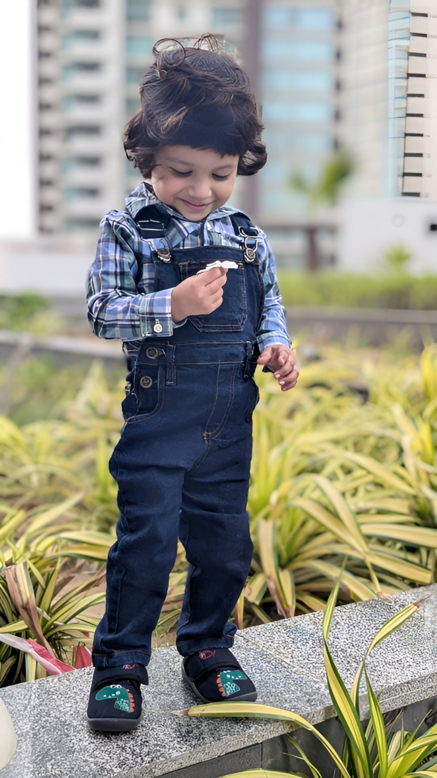 Crafted from high quality denim, our Kids Denim Dungaree in black is perfect for children aged 1-10 years. Made for export, it guarantees exceptional durability and style. Let your little ones play in comfort and fashion with our premium dungarees.