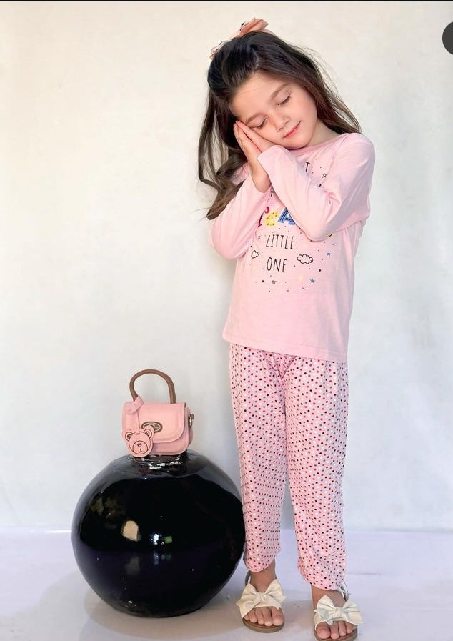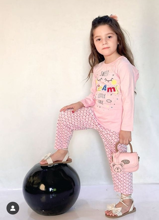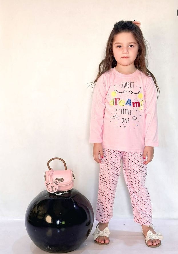"Get your little one ready for sweet dreams with this soft, premium quality pajama set. Made with soft cotton fabric, this set is perfect for girls aged 2 to 9 years. Sleep tight!"